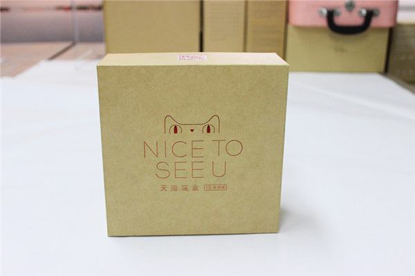 在這款包裝中,牛皮紙天地盒的天盒與底盒高度一致,這極大的增強了包裝的抗壓強度。